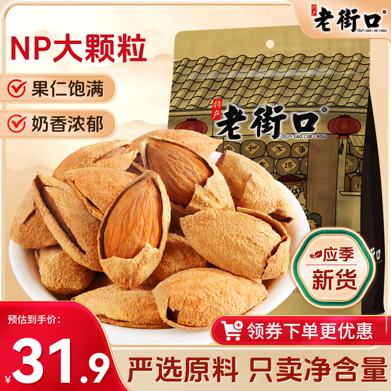 包邮 老街口巴旦木500g/袋 薄壳奶油味扁桃仁炒货干果每日坚果杏仁零食年货